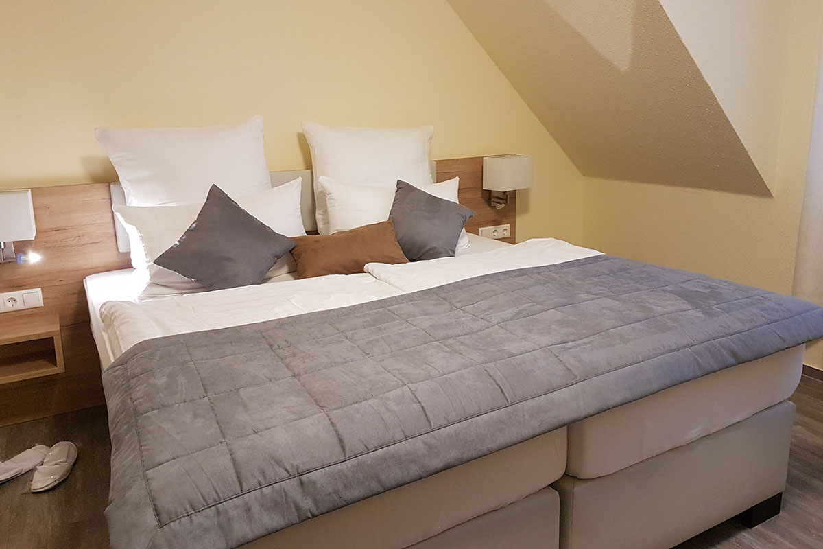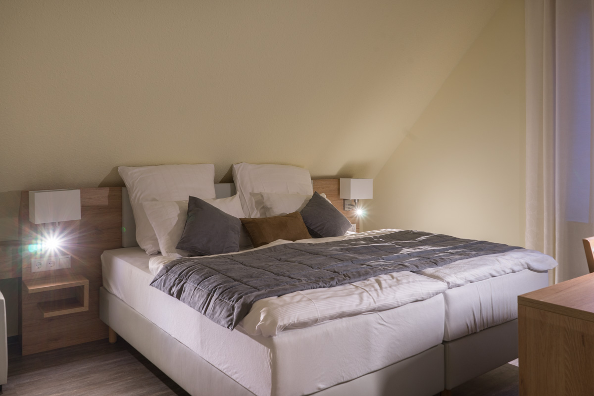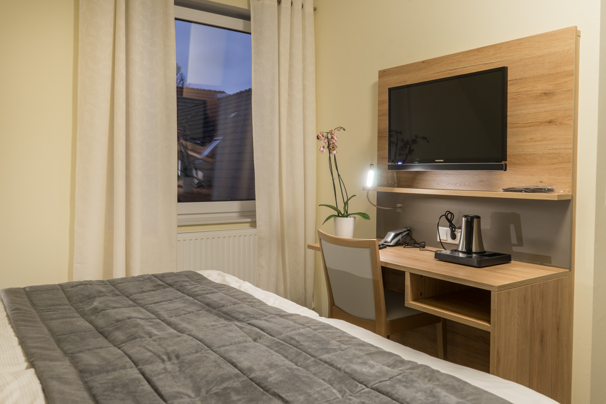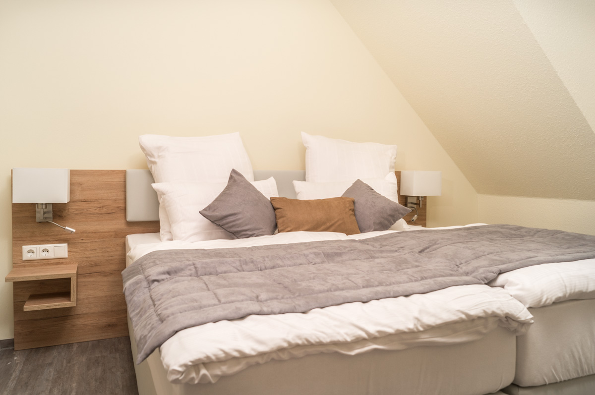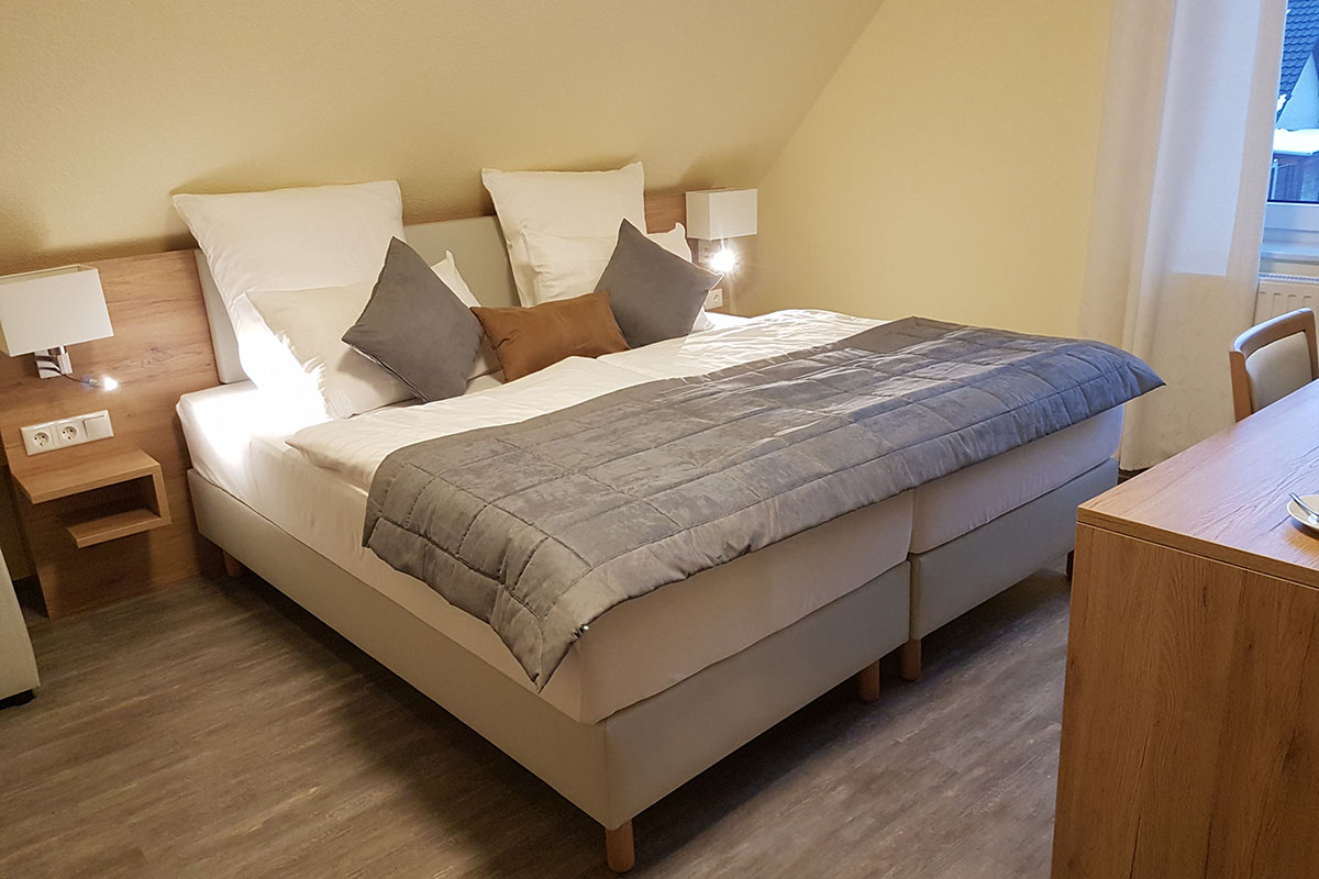 Unser im Jahre 2017 gebautes, in der Nähe von Oldenburg gelegenes Hotel verfügt über ursprünglich acht - und mit dem Ausbau des Hotels im Mai 2023 achtzehn weitere Zimmer. Insgesamt also 26 komfortable (Einzel- oder Familien-) Zimmer, die auch höchsten Ansprüche genügen werden. Alle Zimmer verfügen über ein eigenes Badezimmer, TV, Telefon, Fön, Schreibtisch, freies WLAN und sind hell und freundlich eingerichtet.